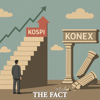 거래량 55% 급감, 시총은 5년 새 반토막 올해 코스닥 이전 기업 3곳뿐… 기능 상실 우려 코스피가 4000선을 돌파하며 연일 사상 최고치를 경신하고 있지만, 중소·벤처기업의 자금조달 창구 역할을 해온 코넥스(KONEX) 시장은 갈수록 위축되고 있다. /챗GPT 생성 이미지[더팩트ㅣ박지..