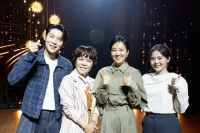 "음악은 기억과 사랑을 이어주는 다리 역할" 5일 밤 10시 20분 첫 방송 가수 손태진, 코미디언 조혜련, 가수 장윤정, 그룹 오마이걸(OH MY GIRL) 효정(왼쪽부터)이 5일 오전 11시에 열린 MBN 새 예능 프로그램 '언포게터블 듀엣' 온라인 제작발표회에 참석해 포즈를 취하고 있다. /..