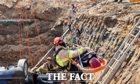 굴착기 등 동원해 실제 현장 재현 싱크홀 대응 훈련 장면. /경기119특수대응단[더팩트ㅣ수원=이승호 기자] 싱크홀 상황을 가정한 실전 대응훈련이 전국 최초로 경기 하남시에서 펼쳐졌다.경기도119특수대응단은 15일부터 17일까지 3일 동안 하남시 교산지구 일대에서 싱크홀 대응 훈련을 실시했다.기..