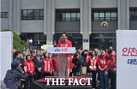 민선8기 인천시 정책의 우수성 강조 천원 정책 확대·원도심과 신도심 균형도시 등 7가지 약속 유정복 국민의힘 인천시장 예비후보가 29일 시청 애뜰광장에서 6·3 지방선거 출마를 선언하고 있다. /인천=김재경 기자[더팩트ㅣ인천= 김재경 기자] 인천시장직 직무정지에 들어간 유정복 국민의힘 인천..
