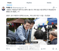 SNS서 "잘하긴 잘하나 봅니다" 부각 정 구청장, 내년 지방선거 서울시장 유력 출마군으로 꼽혀 이재명 대통령이 이례적으로 현역 기초단체장인 정원오 성동구청장을 본인 SNS에서 칭찬하면서 그 배경에 관심이 쏠린다. /이 대통령 엑스(X·옛 트위터) 캡처[더팩트ㅣ이헌일 기자] 이재명 대통령이 ..