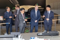 CPSP 추진 과정서 국내 함정 건조 역량 확인 4일 스티븐 퓨어 캐나다 국방조달장관 일행이 HD현대 관계자들로부터 잠수함 모형에 대한 설명을 듣고 있다. /HD현대중공업[더팩트ㅣ황지향 기자] HD현대중공업은 4일 스티븐 퓨어 캐나다 국방조달장관과 필립 라포르튠 주한캐나다대사 일행이 경기 성남..