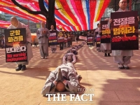 조계사부터 주한미국대사관 앞까지 "오체투지 기도가 평화의 씨앗 되길" 대한불교조계종 사회노동위원회와 실천불교승가회 소속 스님과 시민 30여명은 이날 서울 종로구 조계사부터 주한미국대사관 인근까지 오체투지를 진행했다. 오체투지는 이마와 두 팔꿈치, 두 무릎 등 신체의 다섯 부분이 땅에 닿도록 엎드려..