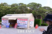 30일 낮 천막 농성 중인 이재용 삼성전자 회장 자택 앞 현장 평화로운 분위기 속 자극적 문구 가득한 천막에 주민들 '난색' 전국삼성전자노동조합(전삼노)이 29일 서울 용산구 이재용 삼성전자 회장의 자택 앞에서 천막농성을 하고 있다. /서울 용산=이새롬 기자[더팩트|서울 용산=오승혁 기자] "..