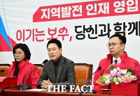 장동혁, '빨간 점퍼' 전달..."당에 변화 바람 일으켜달라" 국민의힘이 25일 청년·여성 중심의 1차 인재 영입 명단을 공개했다. 장동혁 대표(가운데)는 "당에 새로운 변화의 바람을 일으켜달라"고 당부했다. /배정한 기자[더팩트ㅣ국회=김시형 기자] 국민의힘이 25일 지방선거를 앞두고 청년..