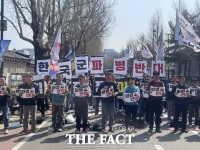 '미국 이스라엘 침략 규탄 파병 반대' 결의대회 "정부, 전쟁 동참 요구 거부해야"…거리행진도 전국민주노동조합총연맹은 25일 서울 종로구 청와대 앞에서 '미국 이스라엘 침략 전쟁 규탄 파병 반대' 결의대회를 열고 미 대사관까지 행진했다. /진주영 기자[더팩트ㅣ이윤경·진주영 기자] 전국민주..