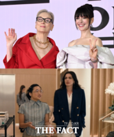 중국인 비하 표현인 '칭총'과 유사하다고 지적 캐릭터 패션·설정에도 불만 드러내 메릴 스트립(위쪽 사진의 왼쪽)과 앤 해서웨이가 주연을 맡은 '악마는 프라다를 입는다2'에 등장하는 중국인 캐릭터를 두고 중국 네티즌들 사이에서 비하 논란이 불거졌다. /이새롬 기자, '악마는 프라다를 입는다2' 예..