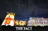 추석 당일 화성행궁 등 무료 개방 수원화성 화서문 성벽에 '2025 수원화성 미디어아트' 메인 작품인 '새빛 향연'이 상영되고 있다. /수원시[더팩트ㅣ수원=조수현 기자] 경기 수원시는 추석 연휴 나들이객을 위해 수원화성을 배경으로 한 미디어아트 등 다양한 프로그램을 마련했다고 5일 밝혔다.수원..